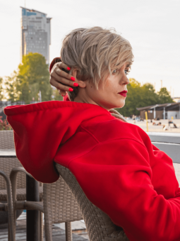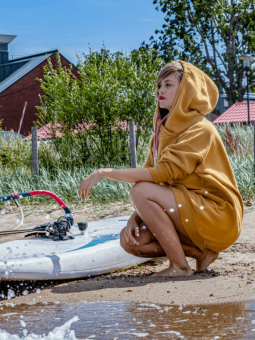 Długa, luźna bluza typu overszie z podwójnym kapturem i kieszenią kangurką. Każdy model szyty jest na Twoje indywidualne zamówienie.