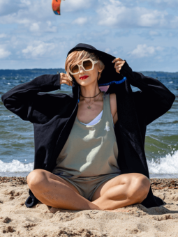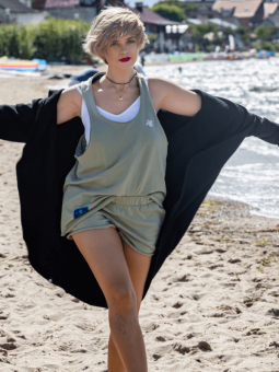 Unisex tank top MEDANO, z mięsistej dzianiny, w kolorze oliwkowym. Każdy model szyty jest na Twoje indywidualne zamówienie.