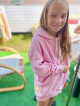 Długa, luźna bluza typu overszie uszyta na dziecko o wzroście 140-150 cm. Każdy model szyty jest na Twoje indywidualne zamówienie.